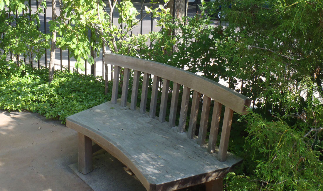 In the spring of 2015, several wooden benches will be installed so people can sit in the garden and meditate to the sound of the water.