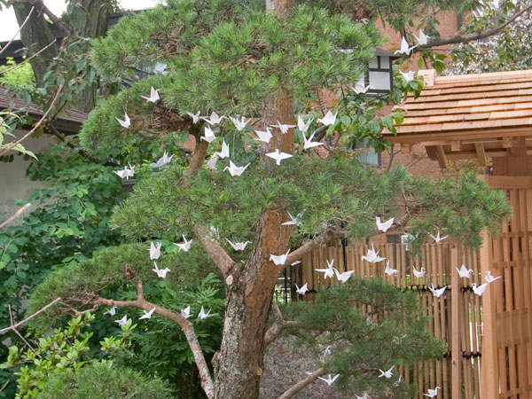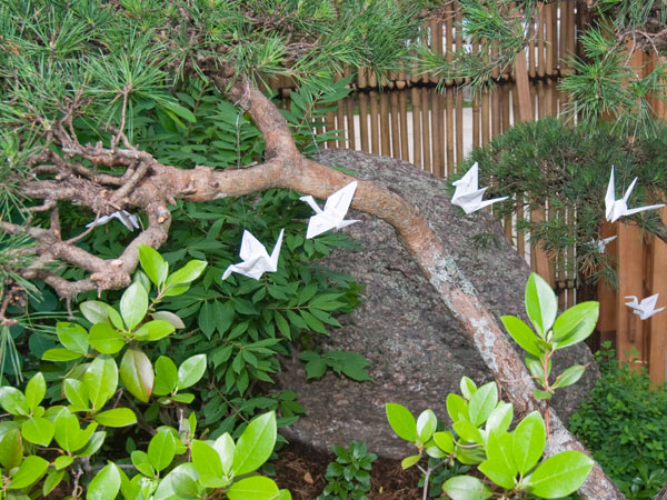 Maintaining the Pine trees and Japanese Maples requires specialized skills and we are very fortunate that Shig Ito (Bonsai artisan and master gardener) took on this responsibility. Initially, Shig pruned the trees himself but now he is training members of his family (daughter Audrey Drechsler and grandchildren Misha and Robin) to take on these intricate tasks. Pruning trees in the Japanese style, much like Bonsai, takes years to master. You can view Shig’s beautiful work in our garden and you can also see some of his Bonsai at the Chicago Botanic Garden and each year at Ginza Holiday.