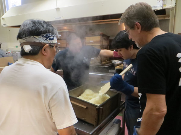 Our annual Mochitsuki will be held on December 12 starting at 8:30 am and ending around 1:00 pm. During Mochitsuki our temple’s social hall transforms in to a noisy and joyful gathering centered around the tradition of pounding rice and making small cakes filled with sweetened azuki beans. The Japanese tradition of Mochitsuki was started many generations ago as a post-harvest celebration and it continues today as a social event that connects us to our past.