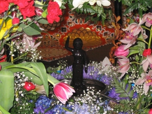 Hanamatsuri celebrates the birth of Siddhartha Gautama, who later became Shakyamuni Buddha, in Lumbini Garden. This holiday is commonly known as Hanamatsuri, or Flower Festival. It is also called Kan-bustu-e, or Bathe the Buddha gathering, because at this observance, a statue of the baby Buddha stands in a flower-covered shrine in a shallow bowl filled with sweet tea.