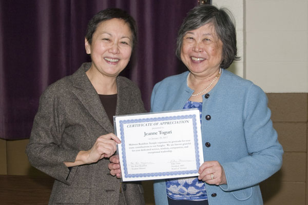MBT recognized Jeanne Toguri at the Annual General Meeting for her many years of outstanding service to the Temple.