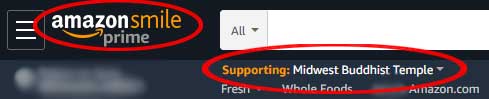Participation is very simple, just click the yellow Amazon logo (or go to smile.amazon.com) and log on to your Amazon account – you’ll see the Amazon-Smile logo with a small message that you’re “Supporting: Midwest Buddhist Temple”.