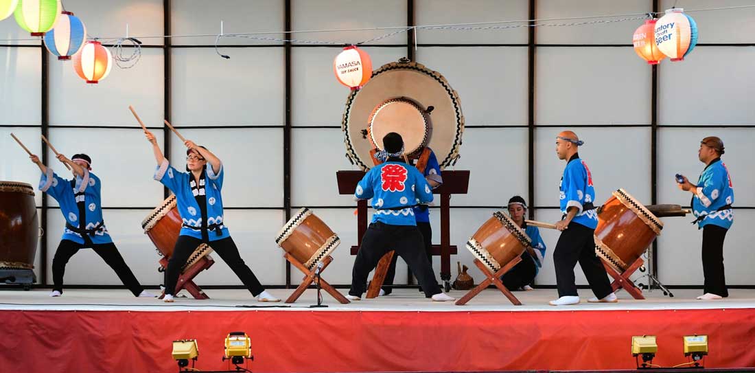 The Midwest Buddhist Temple Taiko Group was started by the Kinnara Taiko Group of Los Angeles in 1977 to bring Japanese American Buddhist Taiko to Chicago. A self-taught group, the MBT Taiko Group embraces the Buddhist concepts of harmony and oneness.
